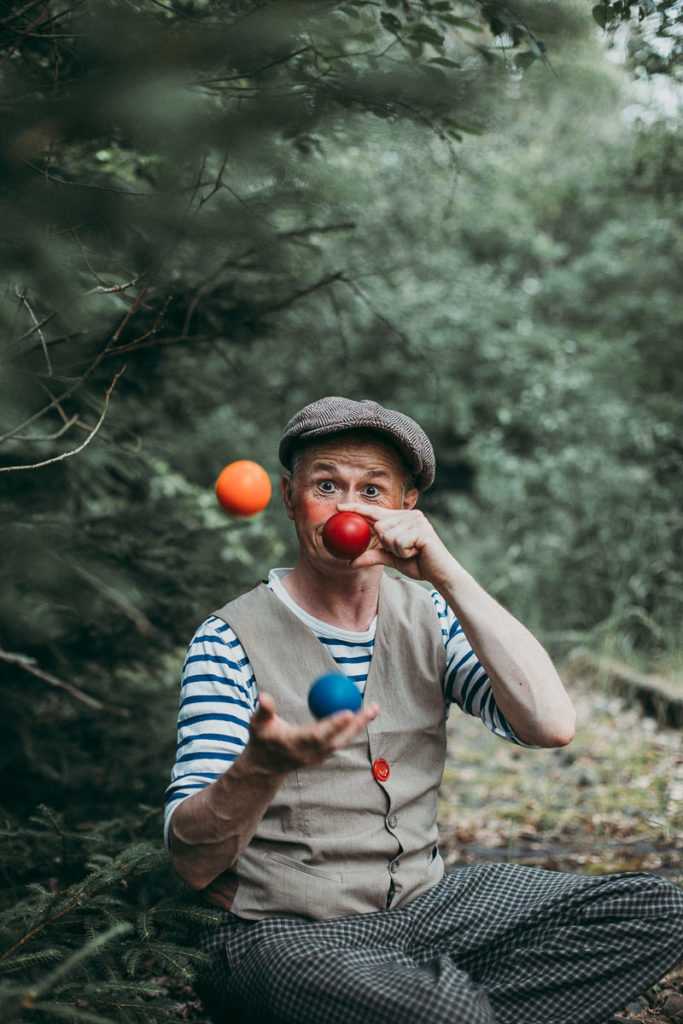 Auf seiner Reise von Hier nach Da hat Clown Odonjo den Bus verpasst und um die Zeit bis zum nächsten Bus nicht in Langweile zu verbringen, beginnt er kurzerhand eine Zirkusvorstellung. Aus seinem Zirkuskoffer – einem uralten Familienerbstück – greift Odonjo verschiedene Requisiten und Kostümteile und es entsteht für und mit dem Publikum eine facettenreiche, poetische und lebendige Show voller Clownerie, Wortwitz, Jonglage, Balance, Zauberhaftigkeit, Musik, Stepptanz und Improvisation. Ohne Zelt und doppelten Boden präsentiert der „ChaosKinderZirkus“ eine äußerst lustige und verspielte Ein-Clown-Zirkus-Show, die Kinder und Erwachsene gleichermaßen zum Lachen, Staunen und Nachdenken bringt. Ein Programm für die ganze Familie! Abgefahren!